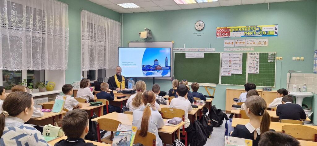 5 декабря в МБОУ ОЦ № 9 имени маршала Г.К. Жукова для учащихся начальных классов состоялась встреча со священником храма сщмч. Константина Богородского отцом Олегом Харитоновым.